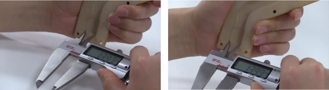 右:模具经过高温烘烤后的内径尺寸 13.99mm